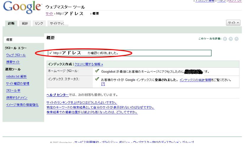 グーグルウェブマスターツールに登録すると、